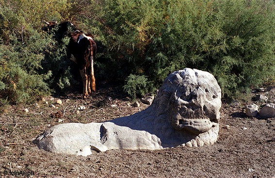 060.  Mileto.  Estatua de león semienterrada en el barro