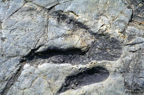 08. Bretún (Soria, España). Huella petrificada de dinosaurio terópodo ('con pies de bestia')