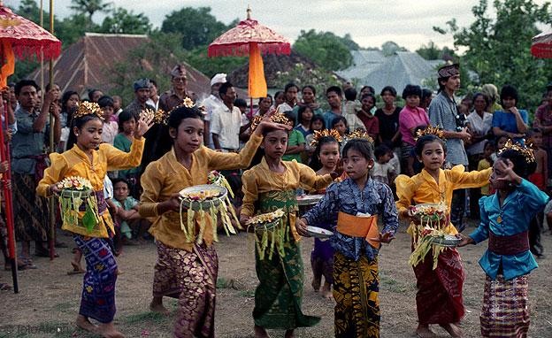 Las divinidades son invitadas a bajar a la tierra y se les entretiene con música. Los niños y las niñas portan flores a las capillas y aprenden a danzar a temprana edad para complacer a los dioses.