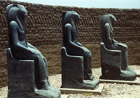 Tres de las catorce estatuas de la diosa-leona Sejmet encontradas en el templo de Amenhotep III (1379-1362 a C).